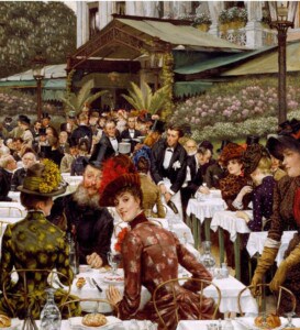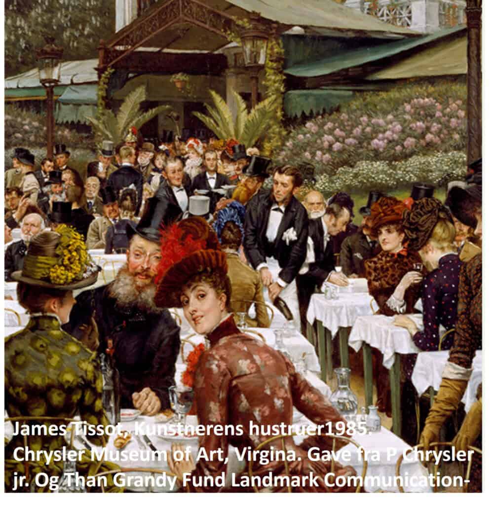 James Tissot, Kunstnernes hustruer, 1885. Chrysler Museum of Art, Norfolk, Virginia. Gave fra Walter P. Chrysler, Jr., og The Grandy Fund, Landmark Communications Fund og “An Affair to Remember” 1982. Billedet er en del af udstillingen ‘Café Society. Kunst og fællesskaber i belle époque Paris’ på Ordrupgaard.
